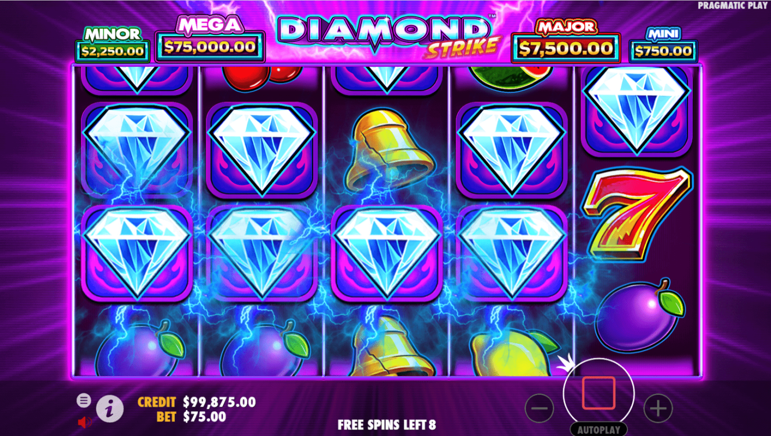 Diamond Strike özelliği için sabırlı olun. Bu bonus rastgele tetikleniyor. Uzun oyun seansları şansınızı artırıyor. Otomatik oynatma özelliğini kullanarak yorulmadan oynayabilirsiniz.