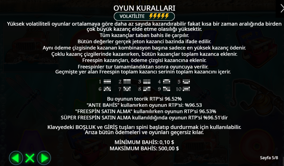 | Oyun Alanı | 5×3, 10 sabit ödeme hattı |