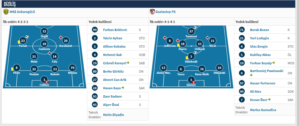 MKE Ankaragücü: Korcan, Pinto, Kitsiou, Pazdan, Moke, Kulusic, Faty, Aydın, Canteros, İlhan, Orgill