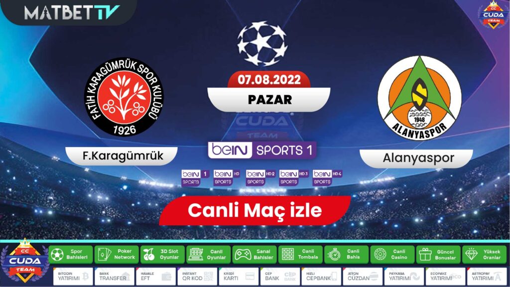 Fatih Karagümrük – Alanyaspor maçı 7 Ağustos Pazar günü saat 19:15’te beIN SPORTS 1‘de canlı yayınlanacak.